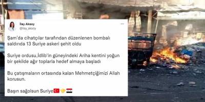 Şam’da Esed güçlerine yönelik saldırıda öldürülen askerleri şehid ilan eden İlay Aksoy bugün Eriha’da bir pazar yerinin bombalanması sonucunda 11 sivilin katledilmesini de bu eylemle irtibatlandırarak meşrulaştırmaya kalkıştı.