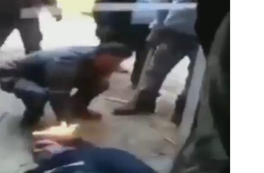 Aşağıdaki videoda yere fırlatılan, saçları yakılan, üzerlerine tekerlek fırlatılan siviller yer alıyor,