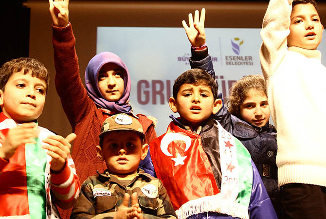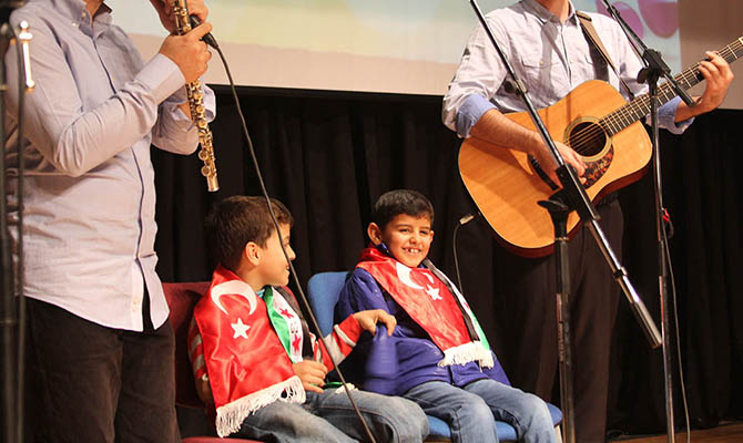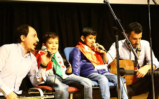 Esed rejimi tarafından Halep’e yapılan hava saldırılarında biri iki bacağını, diğeri iki kolunu kaybeden iki küçük çocuğu da sahneye davet eden ve onlar hakkında bilgi veren Grup Yürüyüş, konserin final bölümünde salondaki tüm çocukları sahneye davet etti ve son iki eserini onlarla birlikte seslendirdi.