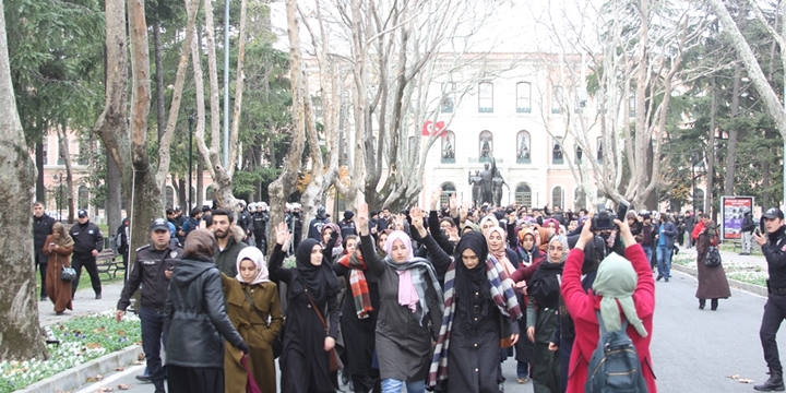Suriye’nin Halep kentinde gerçekleştirilen katliamları lanetlemek için İstanbul Üniversiteli Müslümanlar’ın çağrısıyla İstanbul Üniversitesi’nde toplanan öğrenciler, İran Konsolosluğu’na yürüdü.