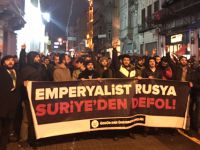Halep’te gerçekleştirilen katliamları lanetlemek için Üniversiteli Müslümanlar’ın çağrısıyla Galatasaray Lisesi’nin önünde toplanan binlerce kişi, Rusya Konsolosluğu’na doğru yürüdü.