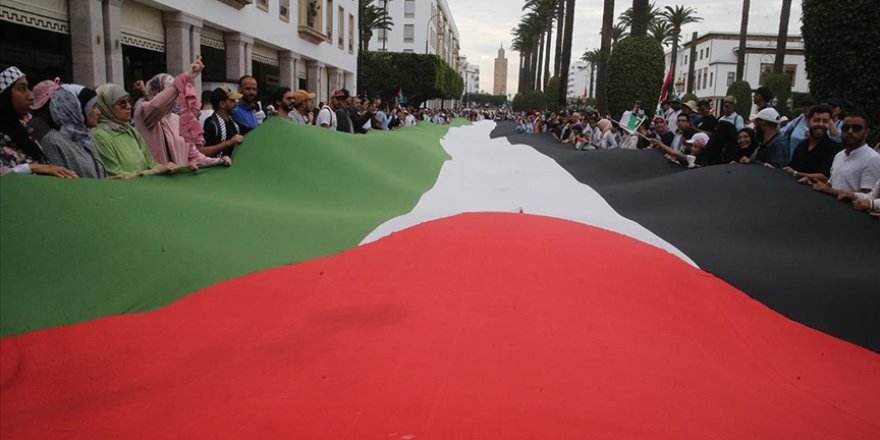 Fas'ta katil İsrail'in Gazze'ye yönelik saldırıları durdurması talebiyle gösteri düzenlendi