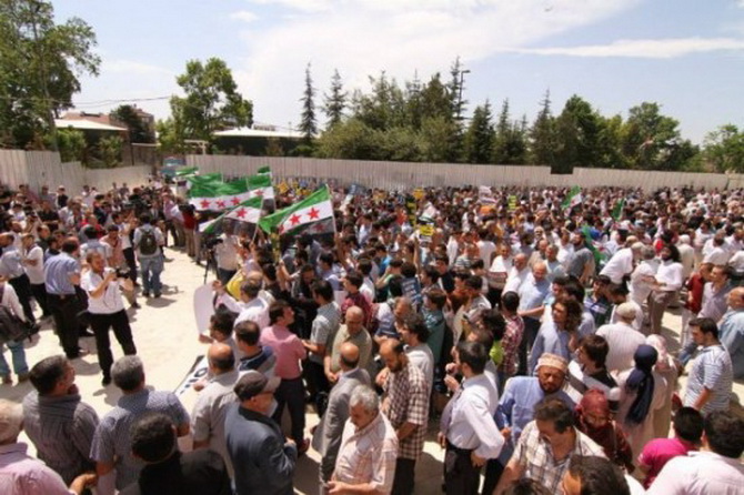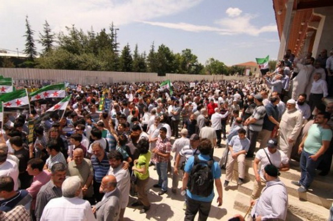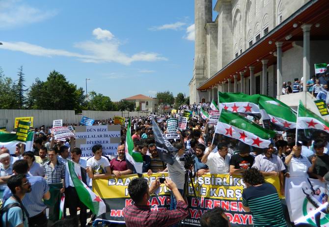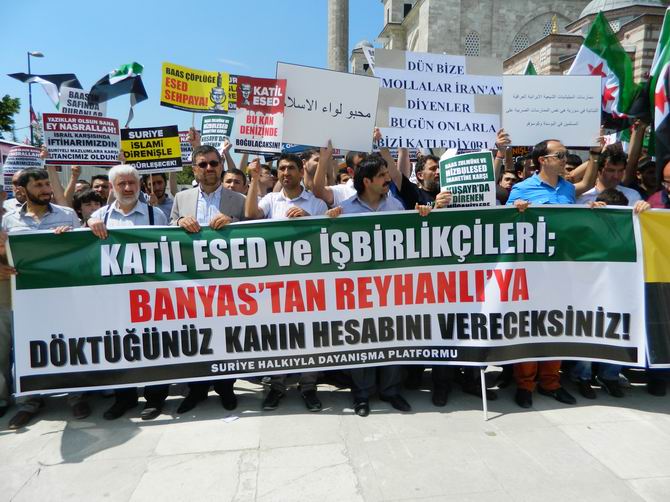 Birçok İslami kuruluşun dâhil olduğu Suriye Halkıyla Dayanışma Platformunun çağrısıyla bugün Fatih Camii’nde toplanan Müslümanlar Banyas’ta Esed’e bağlı çeteler tarafından kadın-çocuk demeden gerçekleştirilen katliamı ve yine Hatay’a bağlı Reyhanlı ilçesinde meydana gelen bombalı saldırıları protesto ettiler. Kusayr direnişinin selamlandığı eylemde Esed, Baas lobisi, Rusya, İran ve Hizbullah aleyhinde sloganlar atıldı.