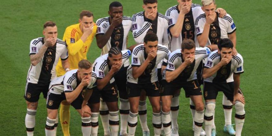 Almanya Milli Takımı, çarşamba günü Katar'da Japonya ile oynadığı maç öncesinde Katar’ın ahlaki ilkeler nezdinde aldığı kararları ağızlarını elleriyle kapatarak protesto etti.