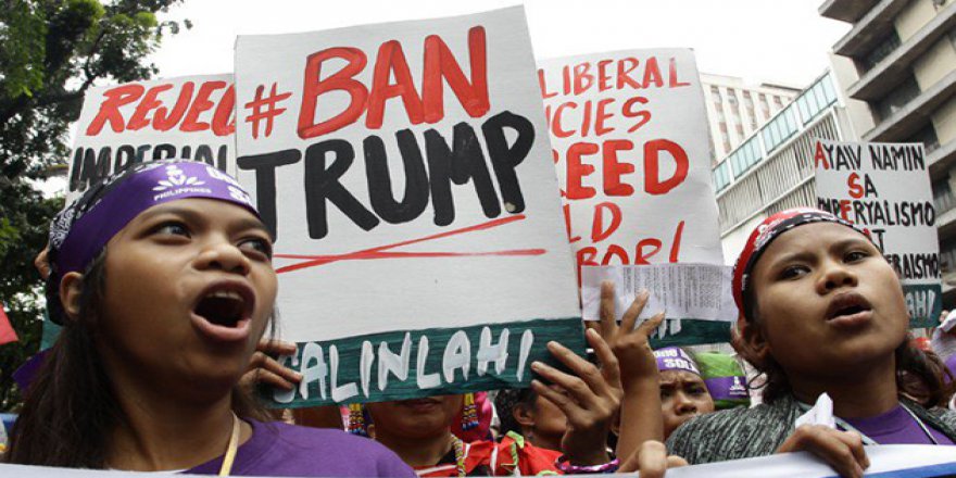 Filipinler medyasında yer alan habere göre sol gruplar, çiftçiler ve öğrencilerden oluşan yüzlerce kişi, Güneydoğu Asya Uluslar Birliği (ASEAN) Liderler Zirvesi için Manila'da bulunan Trump'ı protesto etti.