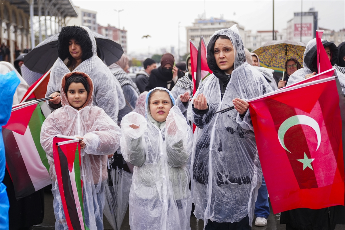 Barış, adalet ve huzur istediklerini, coğrafyanın işgal edilmesine karşı çıktıklarını dile getiren Kabaktepe, "Bu duruş çok önemli bir duruş. Siyonizmi korkutan ve onların er ya da geç sona erecek zulümlerinin işaret çiçekleridir. Onun için Türkiye'ye, 85 milyona, tüm sivil toplum kuruluşlarımıza da teşekkür ediyoruz." ifadelerini kullandı.