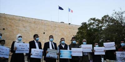 Filistinliler, Batı Kudüs'teki Fransa Başkonsolosluğu önünde Fransa Cumhurbaşkanı Macron'un İslam karşıtı sözleri ve Hz. Muhammed'e hakaret içerikli karikatürleri yayınlanması protesto edildi.