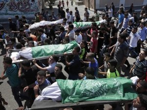 Siyonist İsrail'in, Gazze Şeridi'ne düzenlediği saldırılarda 4'ü çocuk 14 kişi şehit oldu, 25 kişi yaralandı. Saldırıların başladığı 7 Temmuz'dan bu yana şehit olanların sayısı 1.458'e yükseldi.