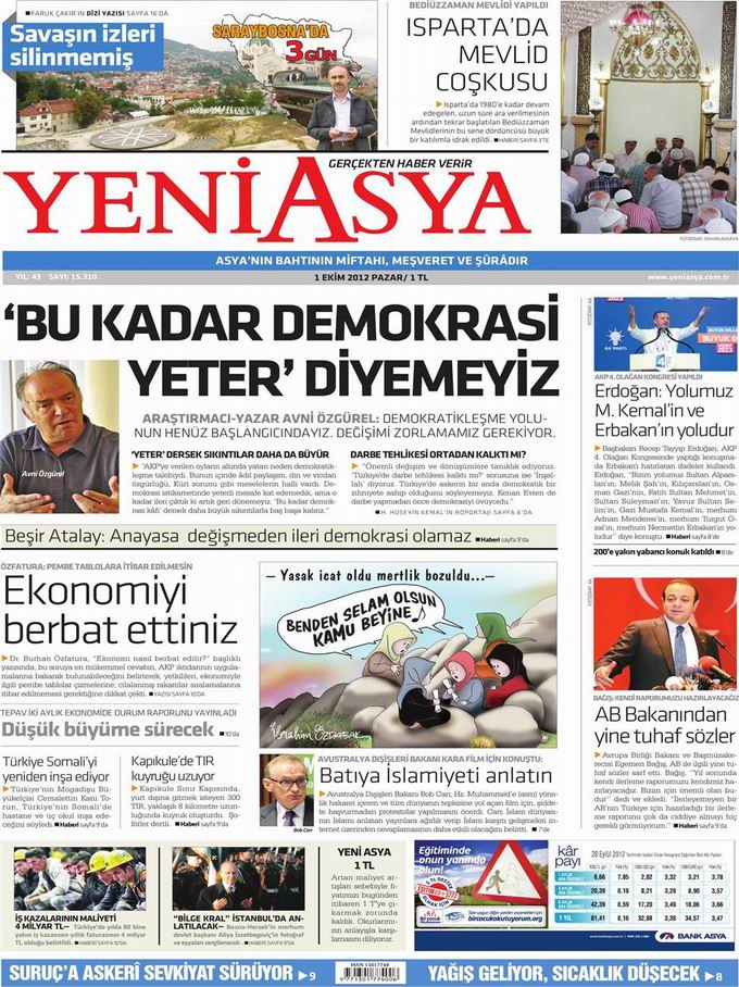 Gazete Manşetleri - 1 Ekim Pazartesi
