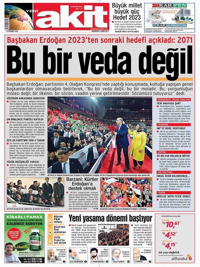 Gazete Manşetleri - 1 Ekim Pazartesi