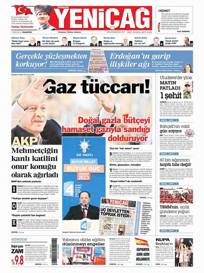 Gazete Manşetleri - 1 Ekim Pazartesi
