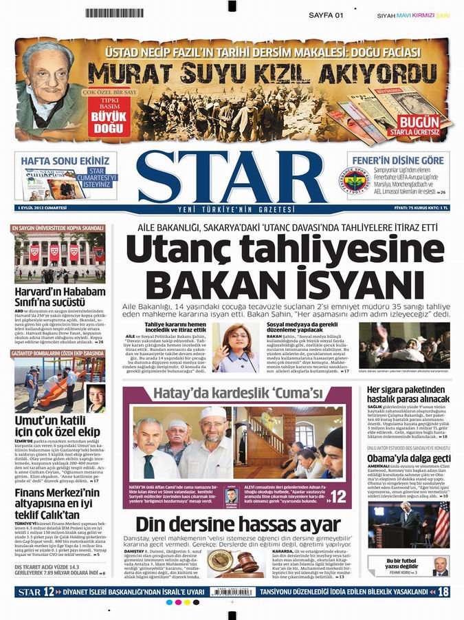 Gazete Manşetleri - 1 Eylül Cumartesi