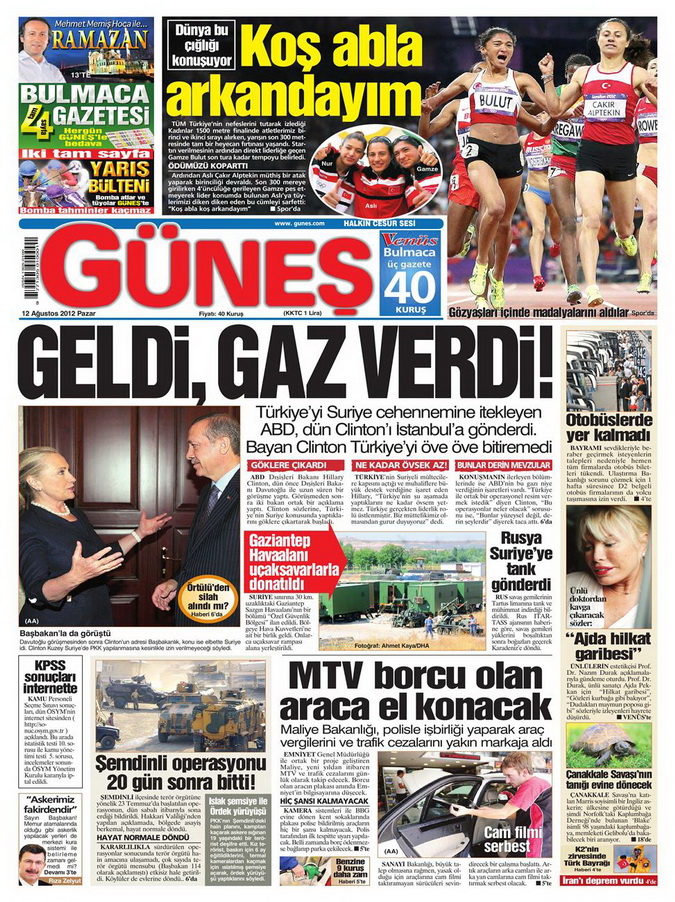 Gazete Manşetleri - 12 Ağustos 2012 Pazar