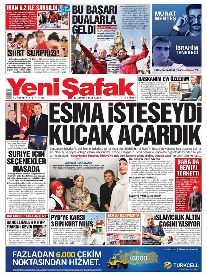 Gazete Manşetleri - 12 Ağustos 2012 Pazar