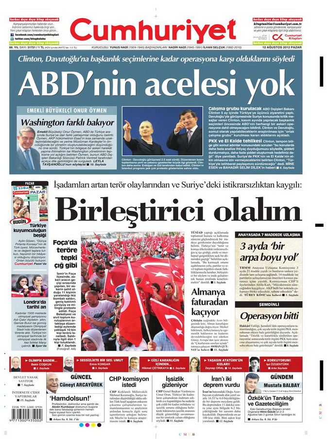 Gazete Manşetleri - 12 Ağustos 2012 Pazar
