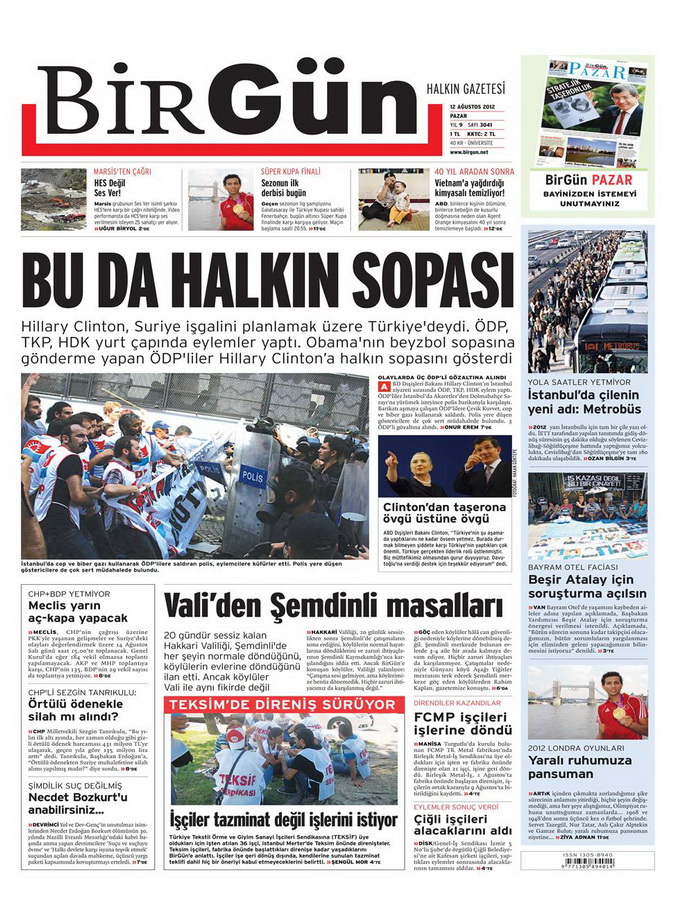 Gazete Manşetleri - 12 Ağustos 2012 Pazar
