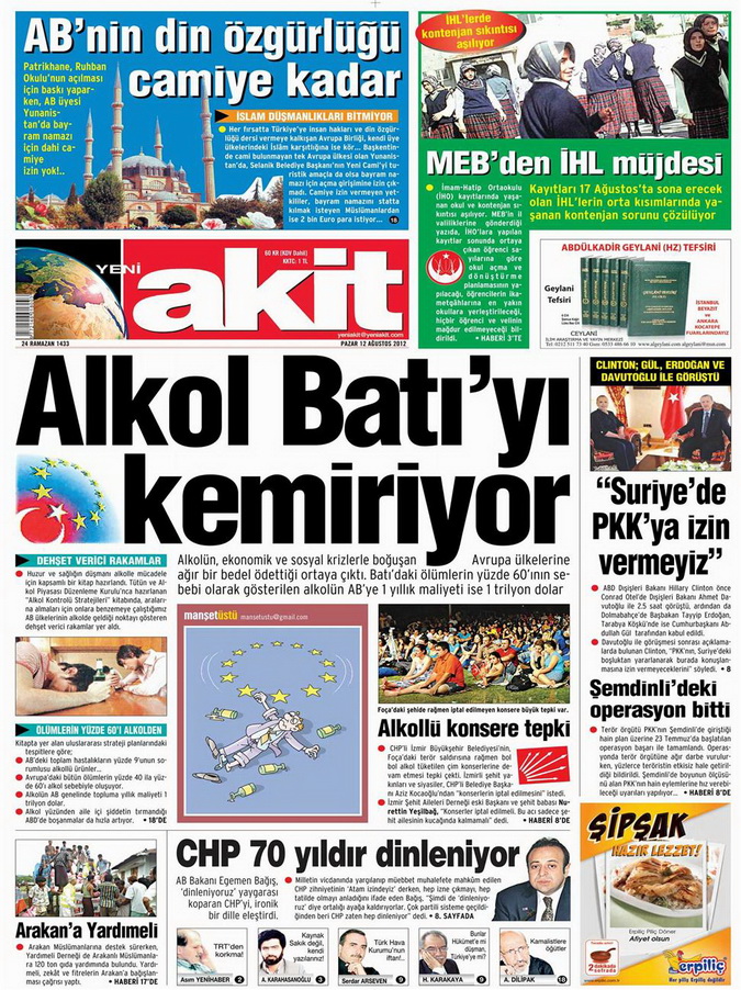 Gazete Manşetleri - 12 Ağustos 2012 Pazar