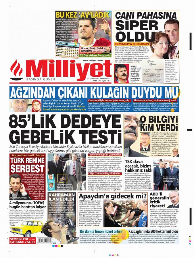 Gazete Manşetleri - 12 Eylül Çarşamba