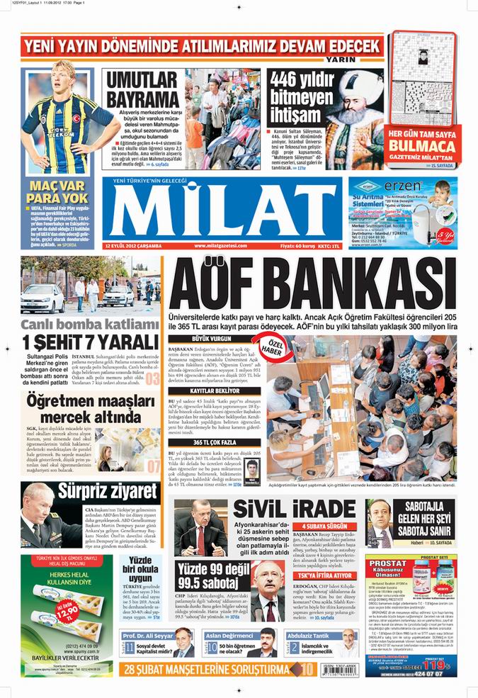Gazete Manşetleri - 12 Eylül Çarşamba