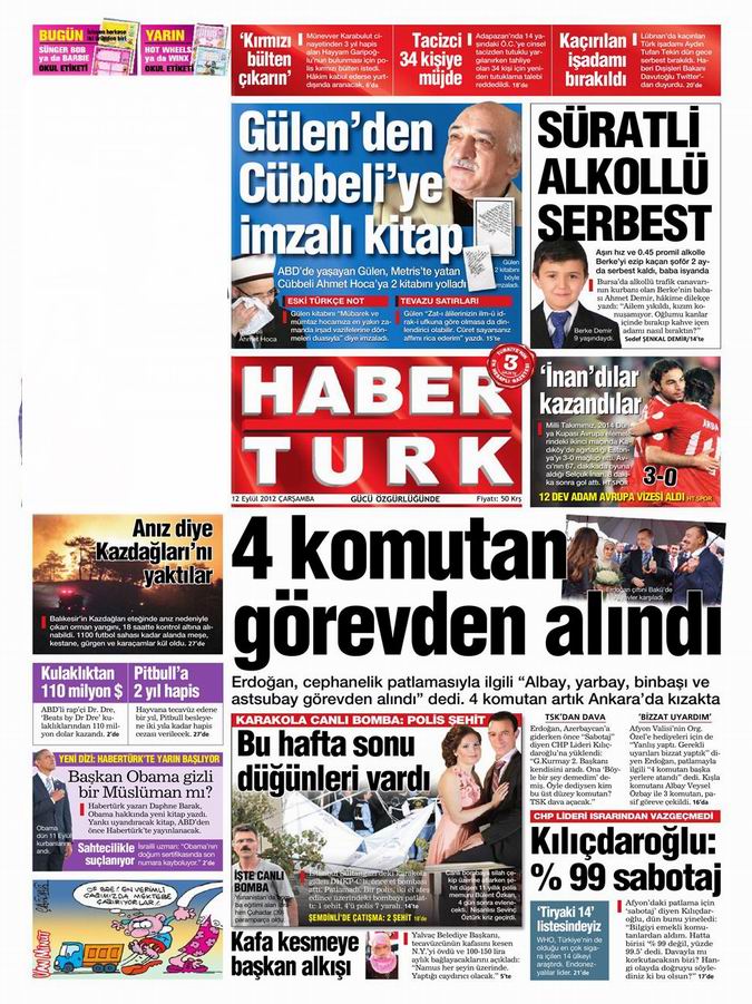 Gazete Manşetleri - 12 Eylül Çarşamba