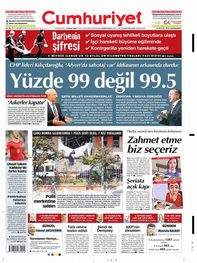 Gazete Manşetleri - 12 Eylül Çarşamba