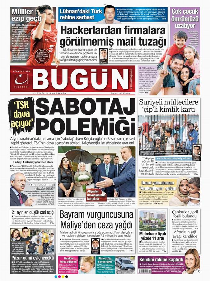 Gazete Manşetleri - 12 Eylül Çarşamba