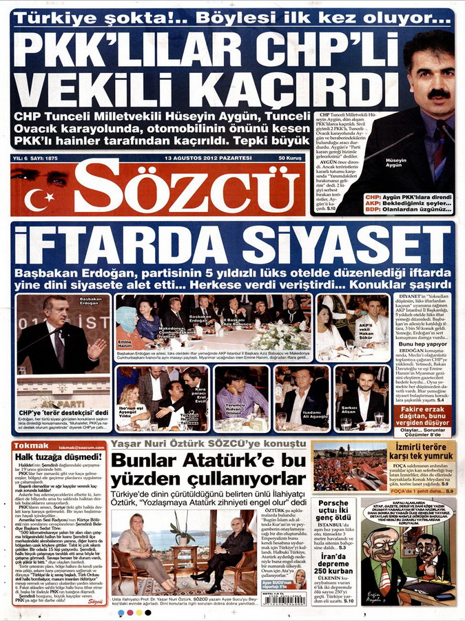 Gazete Manşetleri - 13 Ağustos 2012 Pazartesi