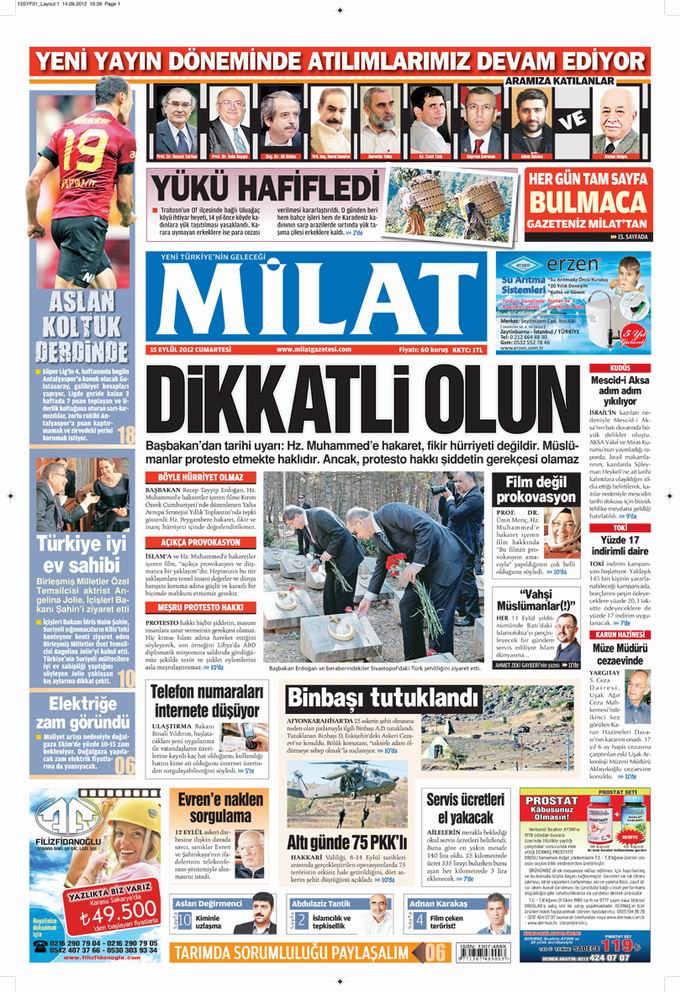 Gazete Manşetleri - 15 Eylül Cumartesi