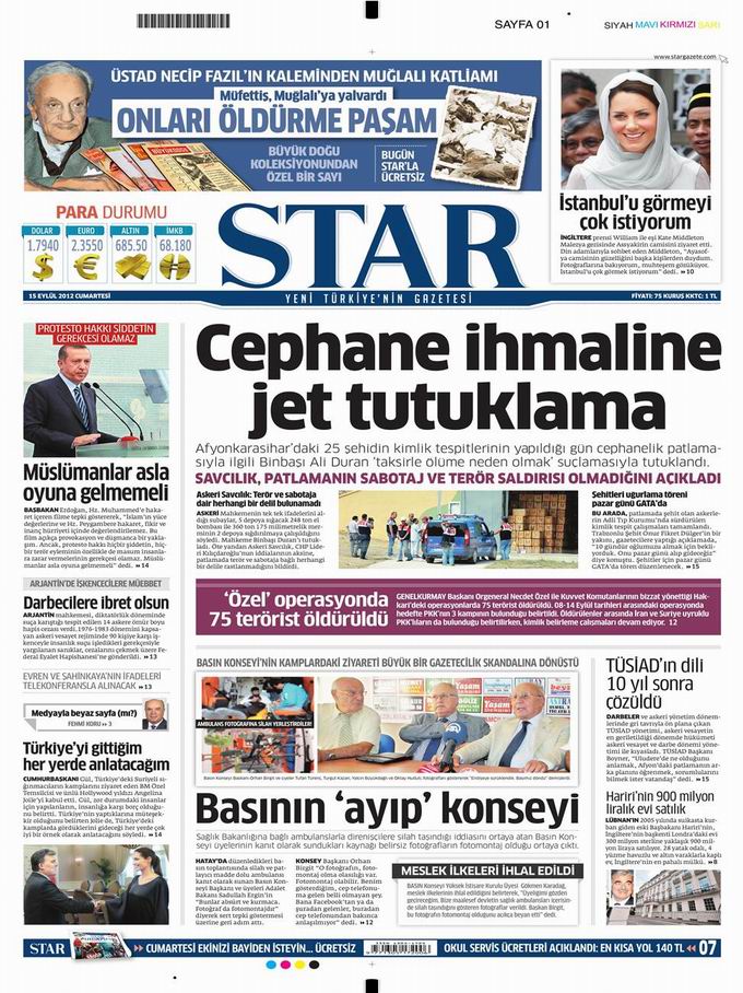 Gazete Manşetleri - 15 Eylül Cumartesi