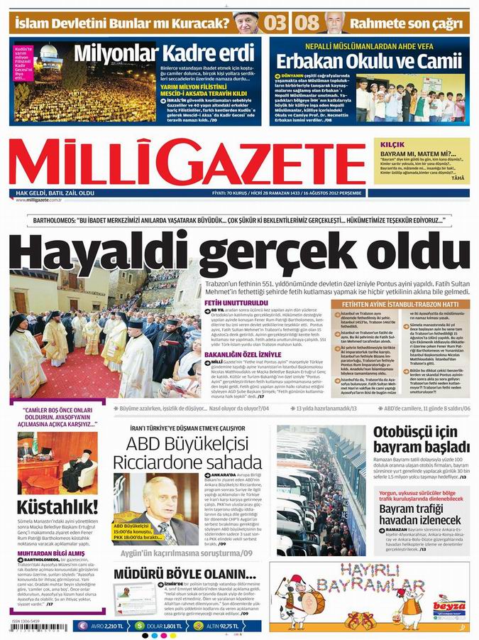 Gazete Manşetleri - 16 Ağustos Perşembe