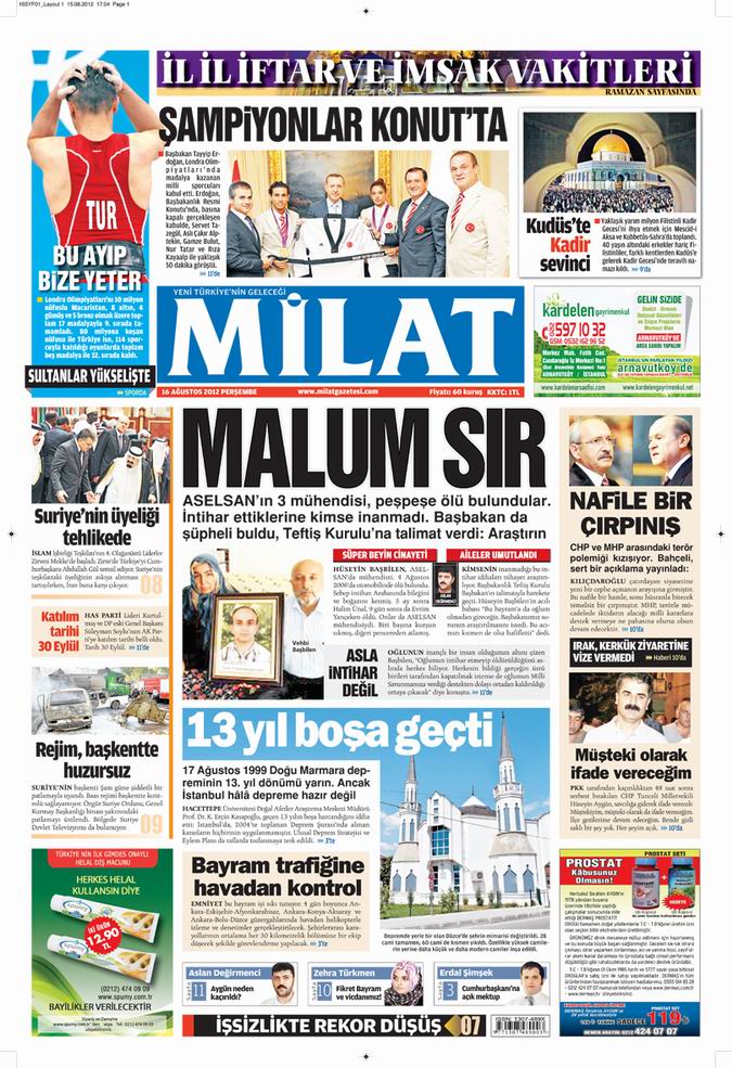 Gazete Manşetleri - 16 Ağustos Perşembe