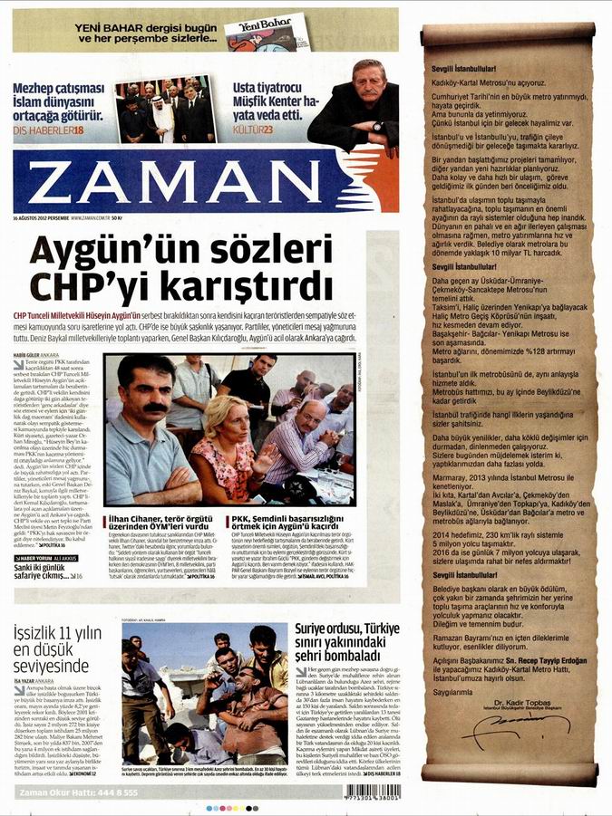 Gazete Manşetleri - 16 Ağustos Perşembe