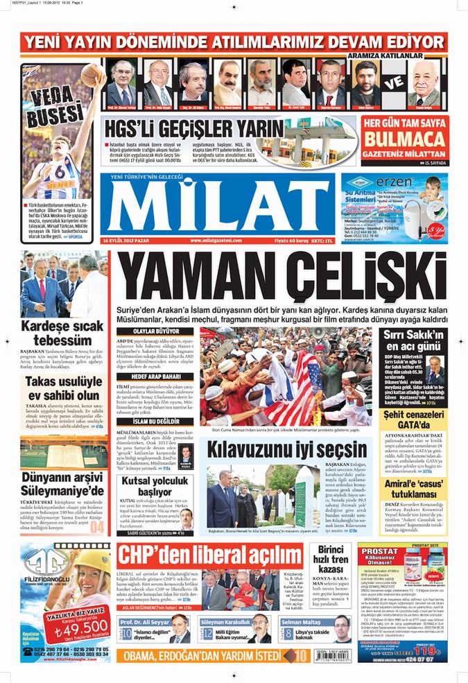 Gazete Manşetleri - 16 Eylül Pazar