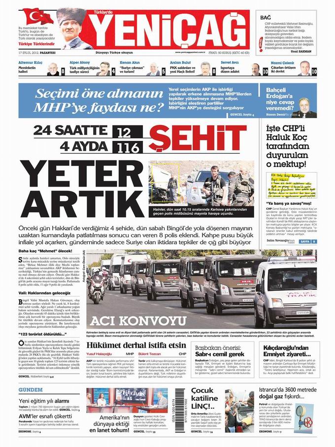 Gazete Manşetleri - 17 Eylül Pazartesi