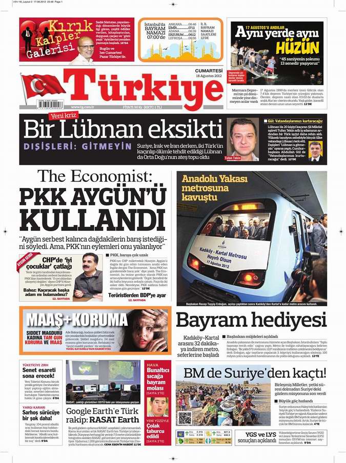 Gazete Manşetleri - 18 Ağustos Cumartesi