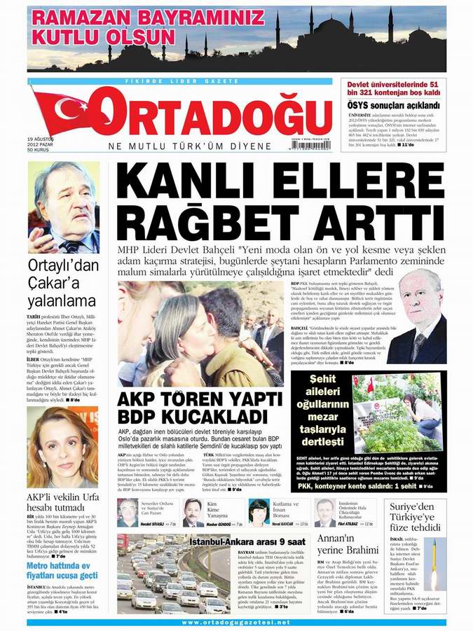 Gazete Manşetleri - 19 Ağustos Pazar
