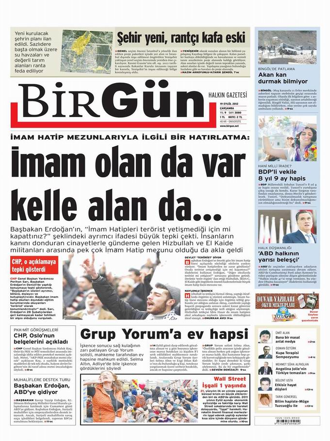 Gazete Manşetleri - 19 Eylül Çarşamba