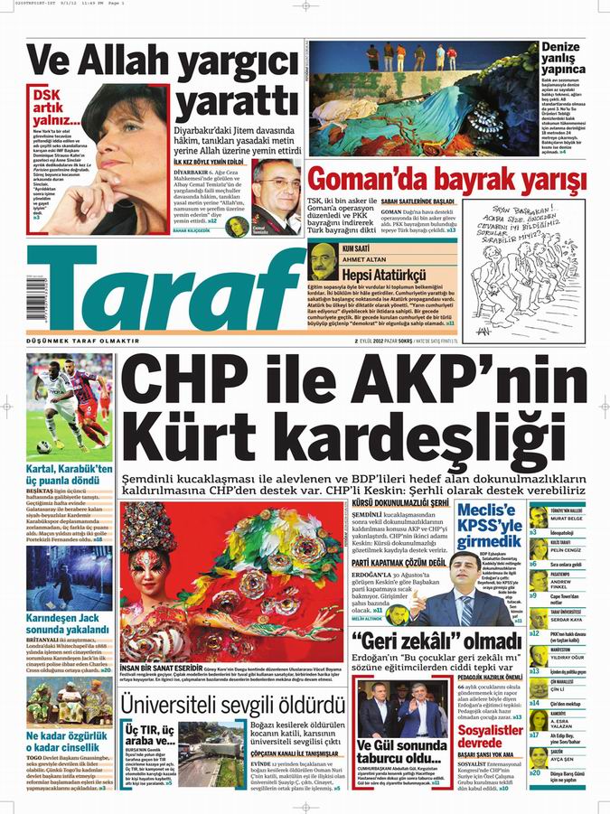 Gazete Manşetleri - 2 Eylül Pazar