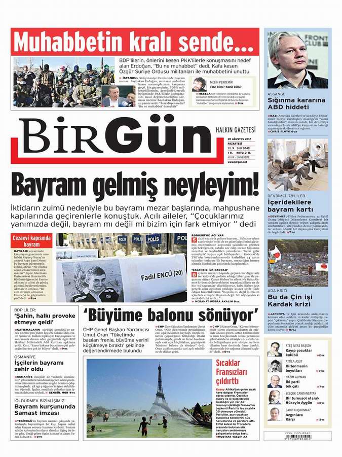 Gazete Manşetleri - 20 Ağustos Pazartesi