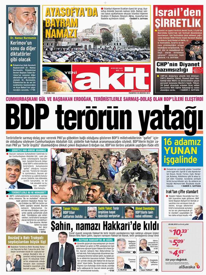 Gazete Manşetleri - 20 Ağustos Pazartesi