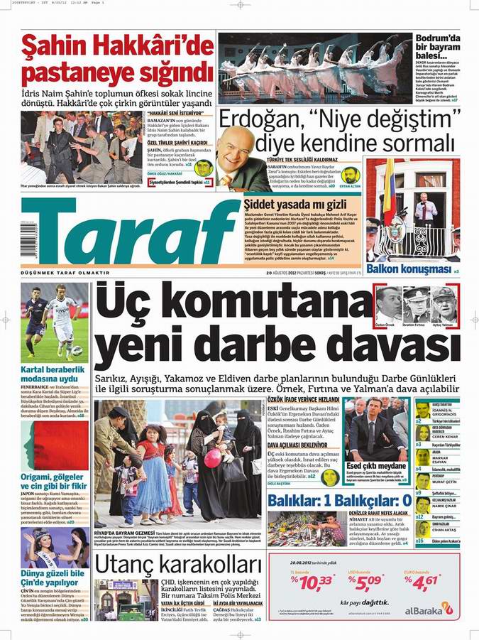 Gazete Manşetleri - 20 Ağustos Pazartesi