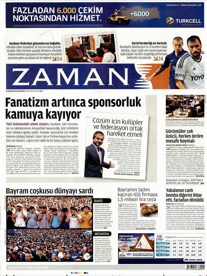 Gazete Manşetleri - 20 Ağustos Pazartesi