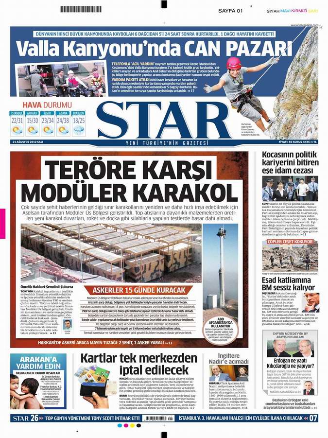 Gazete Manşetleri - 21 Ağustos Salı