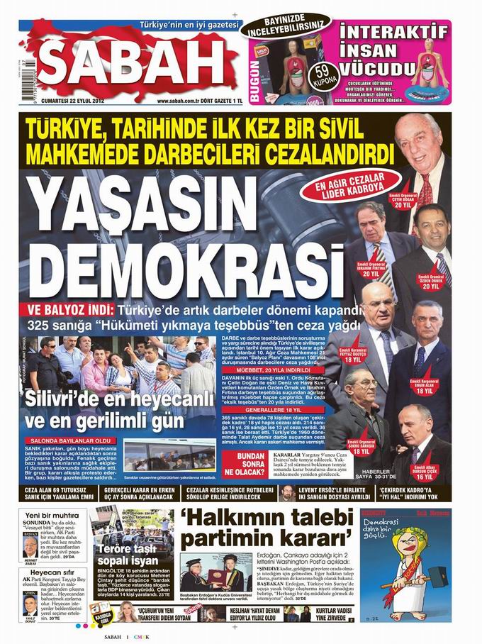 Gazete Manşetleri - 22 Eylül Cumartesi