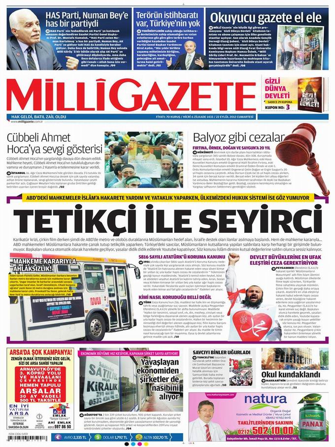 Gazete Manşetleri - 22 Eylül Cumartesi