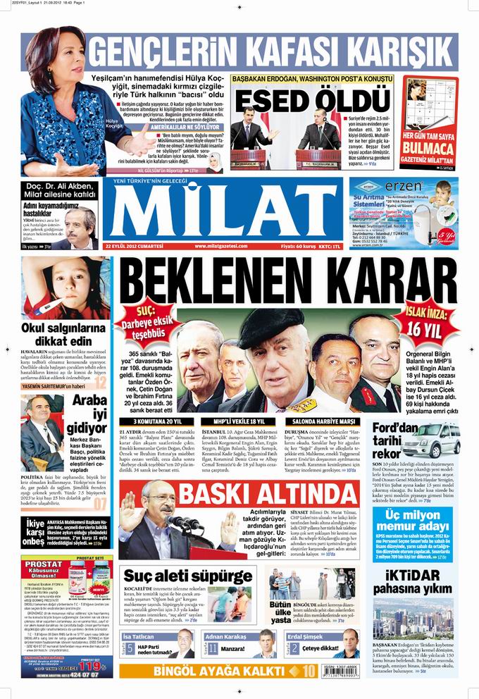 Gazete Manşetleri - 22 Eylül Cumartesi