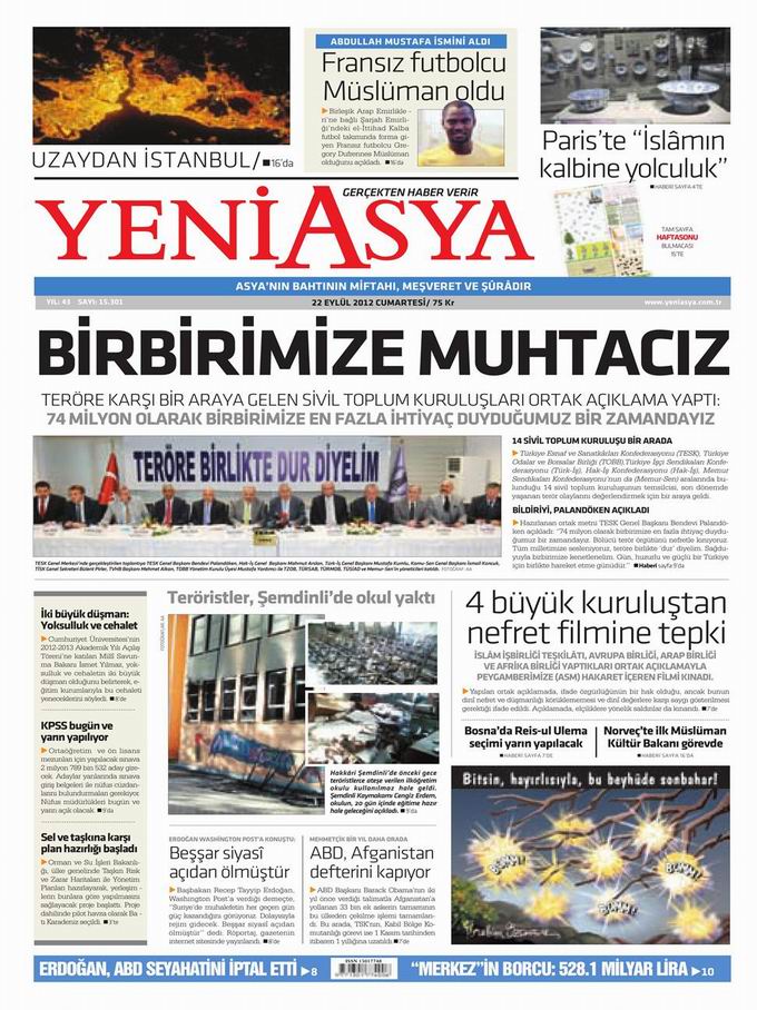 Gazete Manşetleri - 22 Eylül Cumartesi