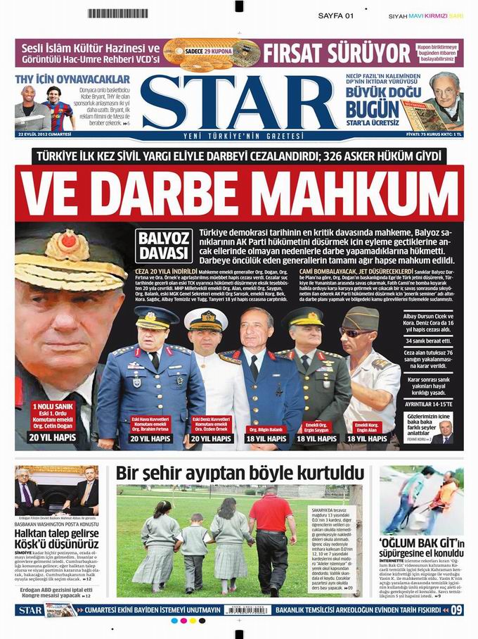 Gazete Manşetleri - 22 Eylül Cumartesi