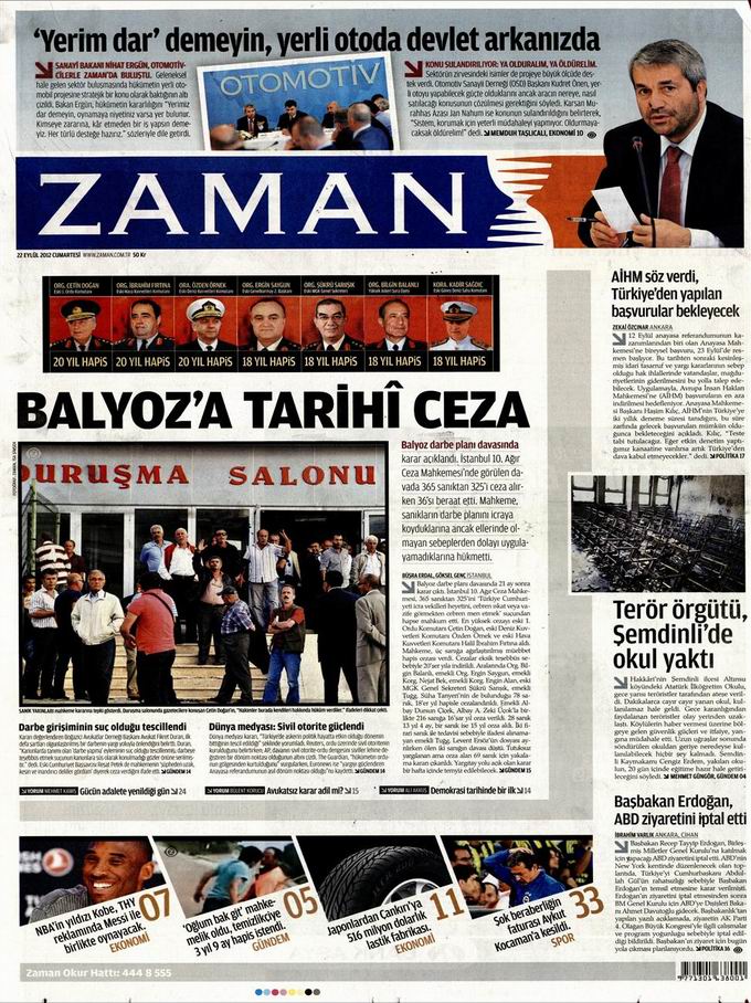 Gazete Manşetleri - 22 Eylül Cumartesi
