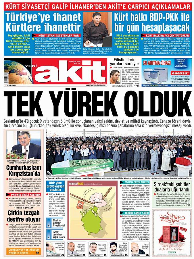 Gazete Manşetleri - 23 Ağustos Perşembe